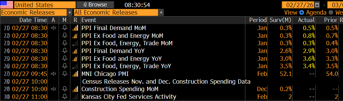 l'inflazione PPI di gennaio si attesta al 2,9%, al di sopra delle aspettative del 2,6%.