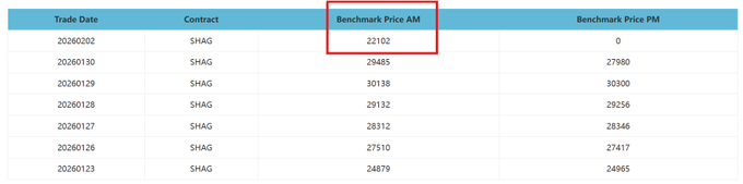 Finora l'unico prezzo di riferimento disponibile per l'argento dalla Cina è il prezzo di riferimento SGE AM, attualmente pari a circa 99$/oz equivalente