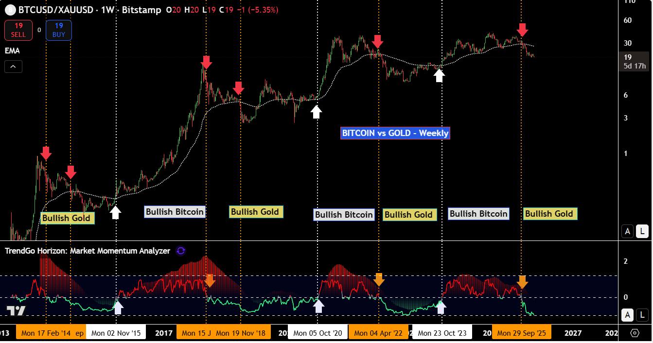 Questo ratio weekly che utilizza il Momentum Analyzer di TrendGo.io mi dice quando preferire uno o l'altro.