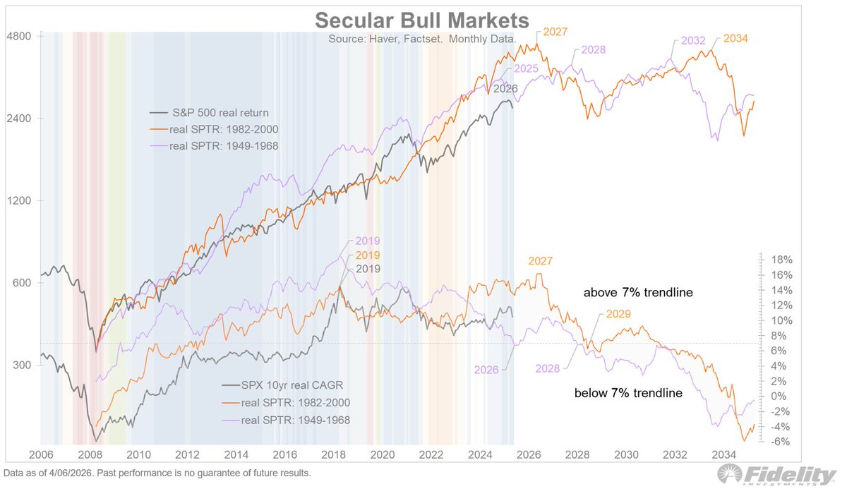 E' una analisi di Fidelity U.S.A., aggiornata al 6 aprile 2026, è una conferma tecnica fondamentale per la tesi: il "decennio d'oro" delle azioni è giunto al termine, lasciando spazio al Debasement Trade.