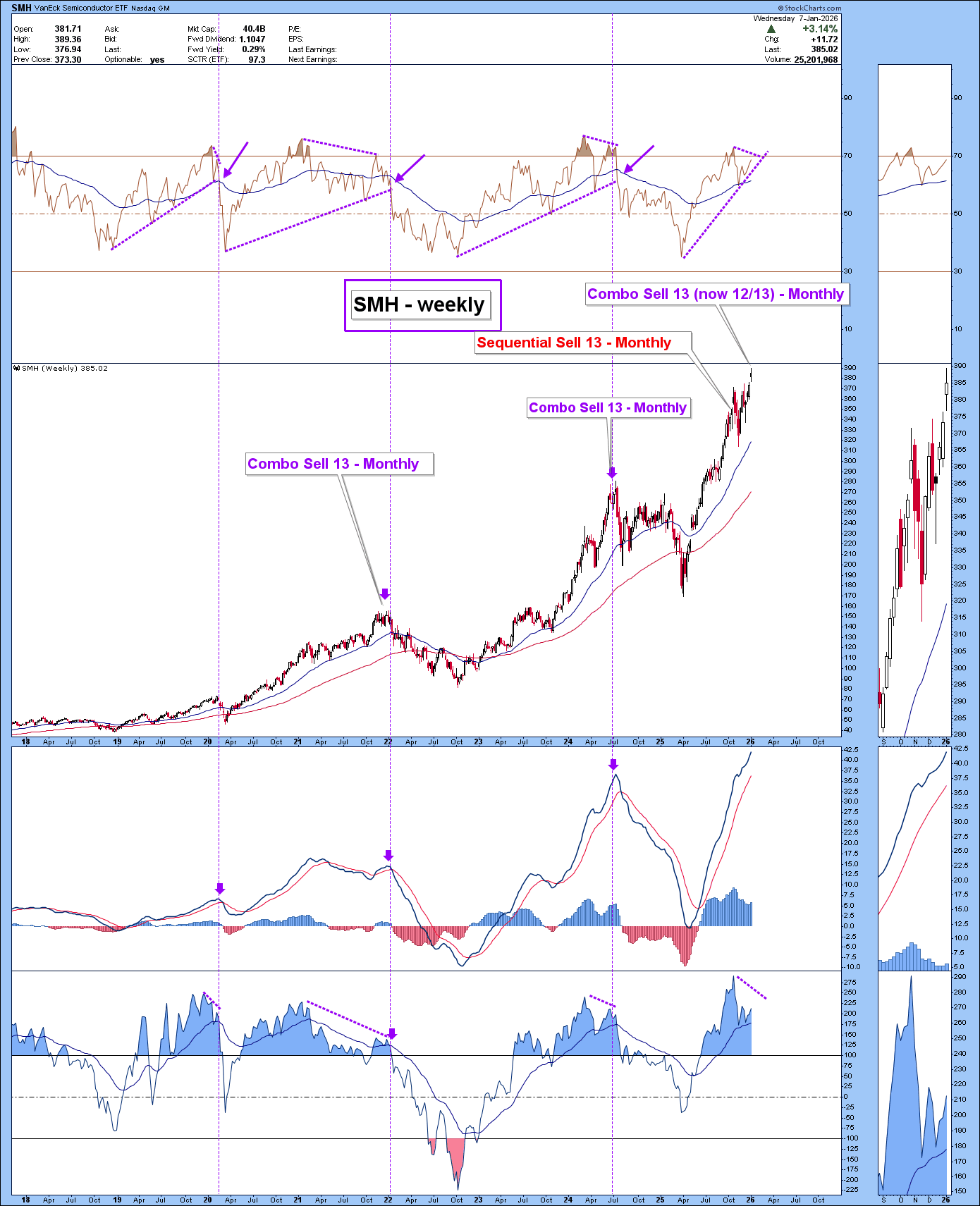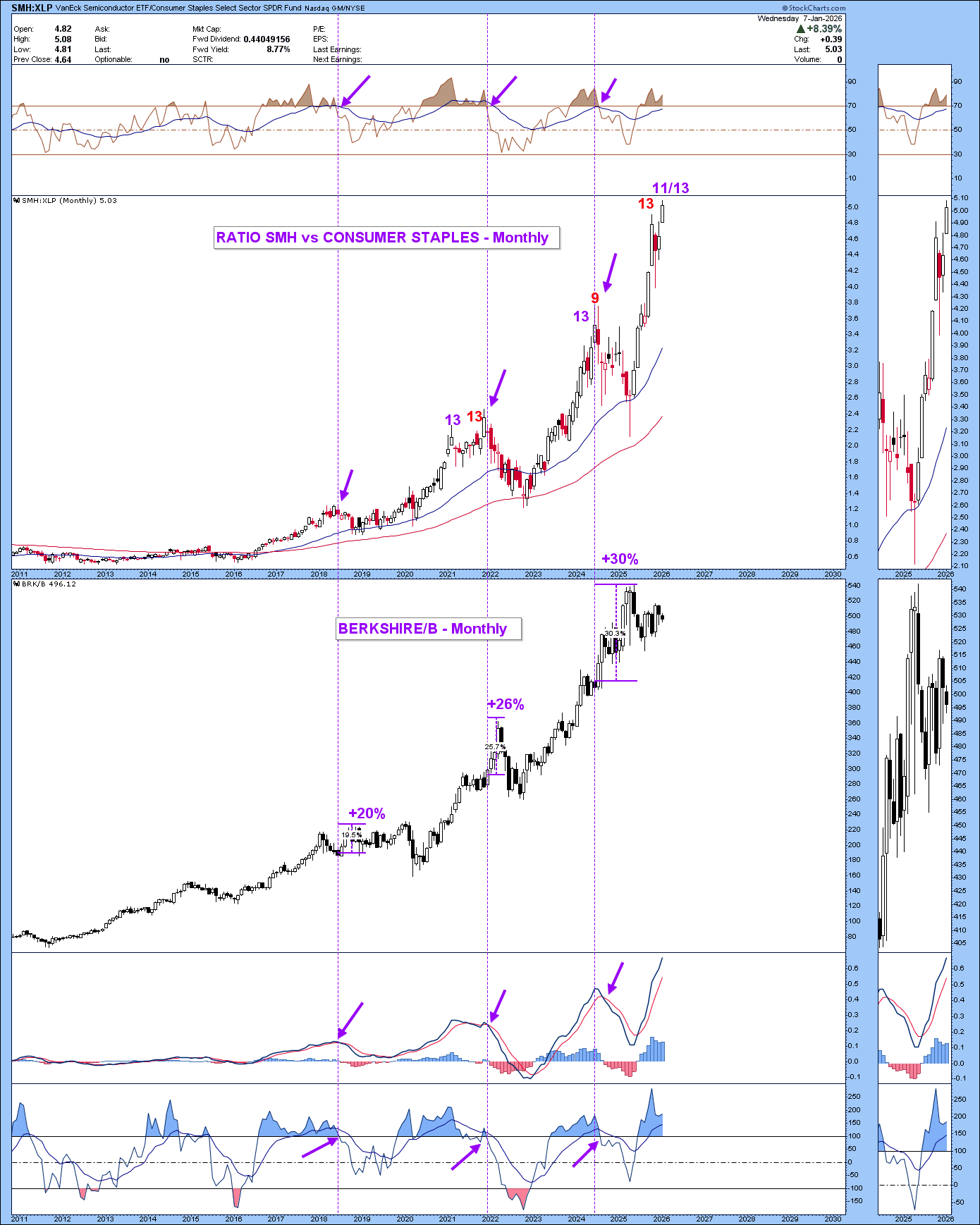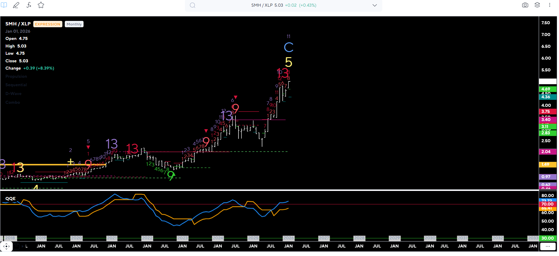 - 2) il ratio tra SMH & Consumer Staples ha segnali mensili quasi simili (Combo Sell 11/13 )
