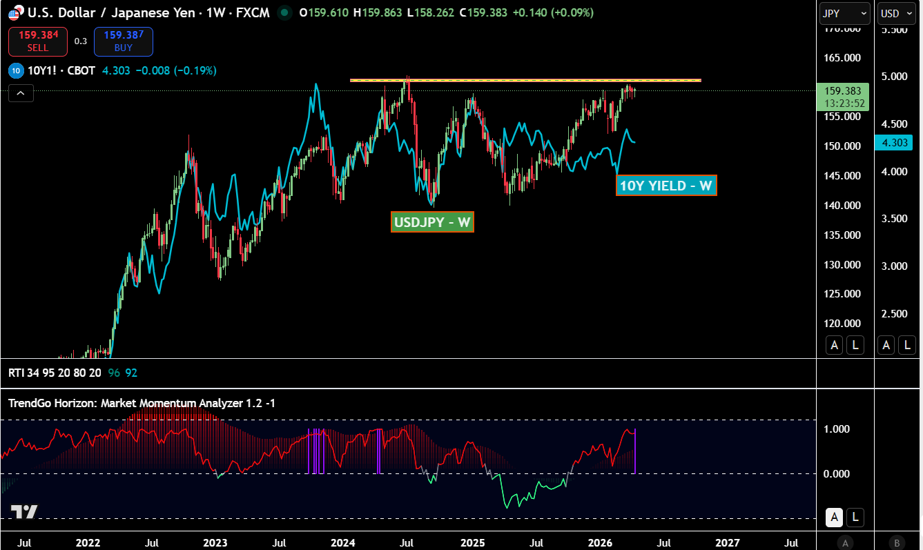 guardano al cambio USDJPY che si sta avvicinando alla fatidica resistenza di 160.