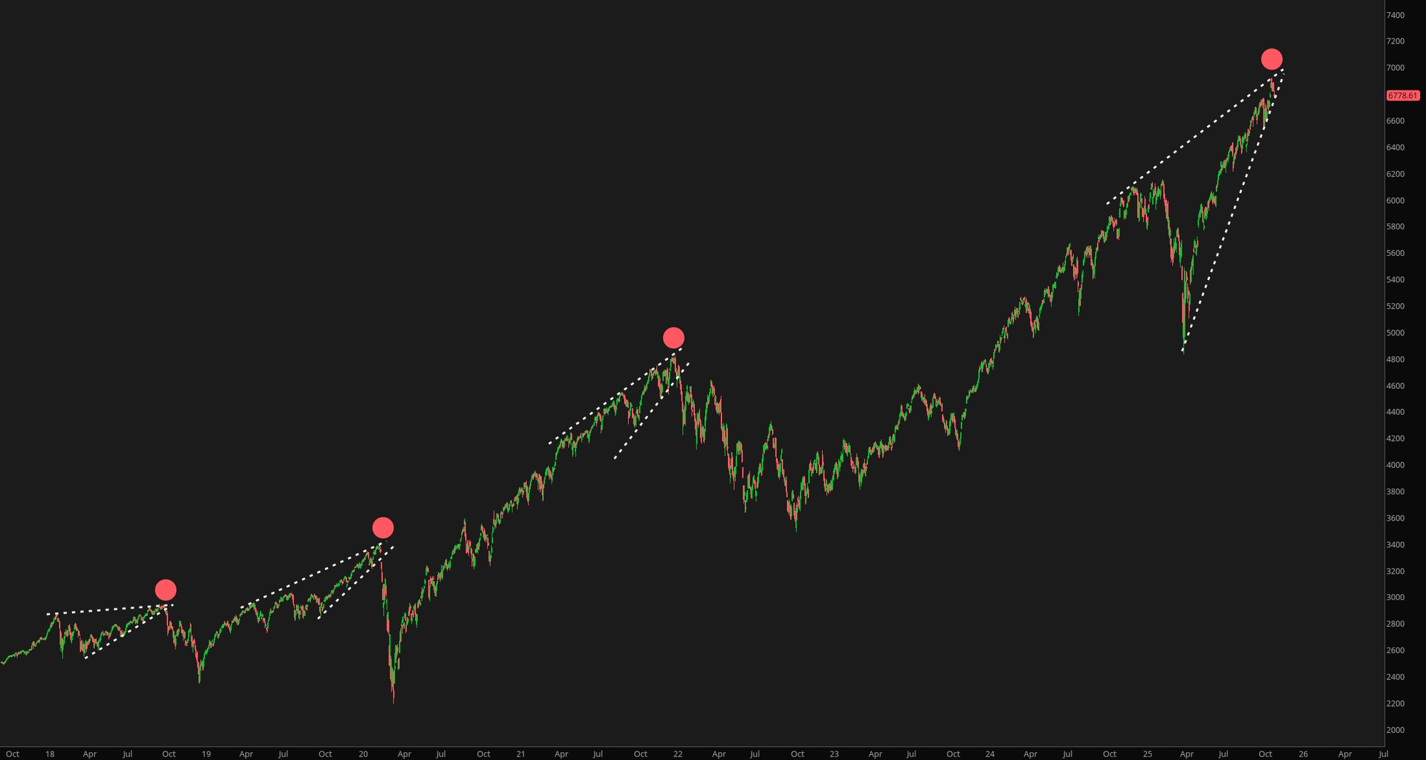 .... ed attenzione ai rising wedge...sempre presenti sui top dell'SPX