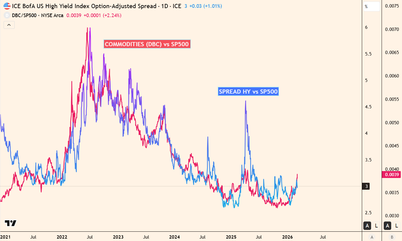 Qui - per esempio - vedi lo spread tra i Bonds High Yield & l'SP500