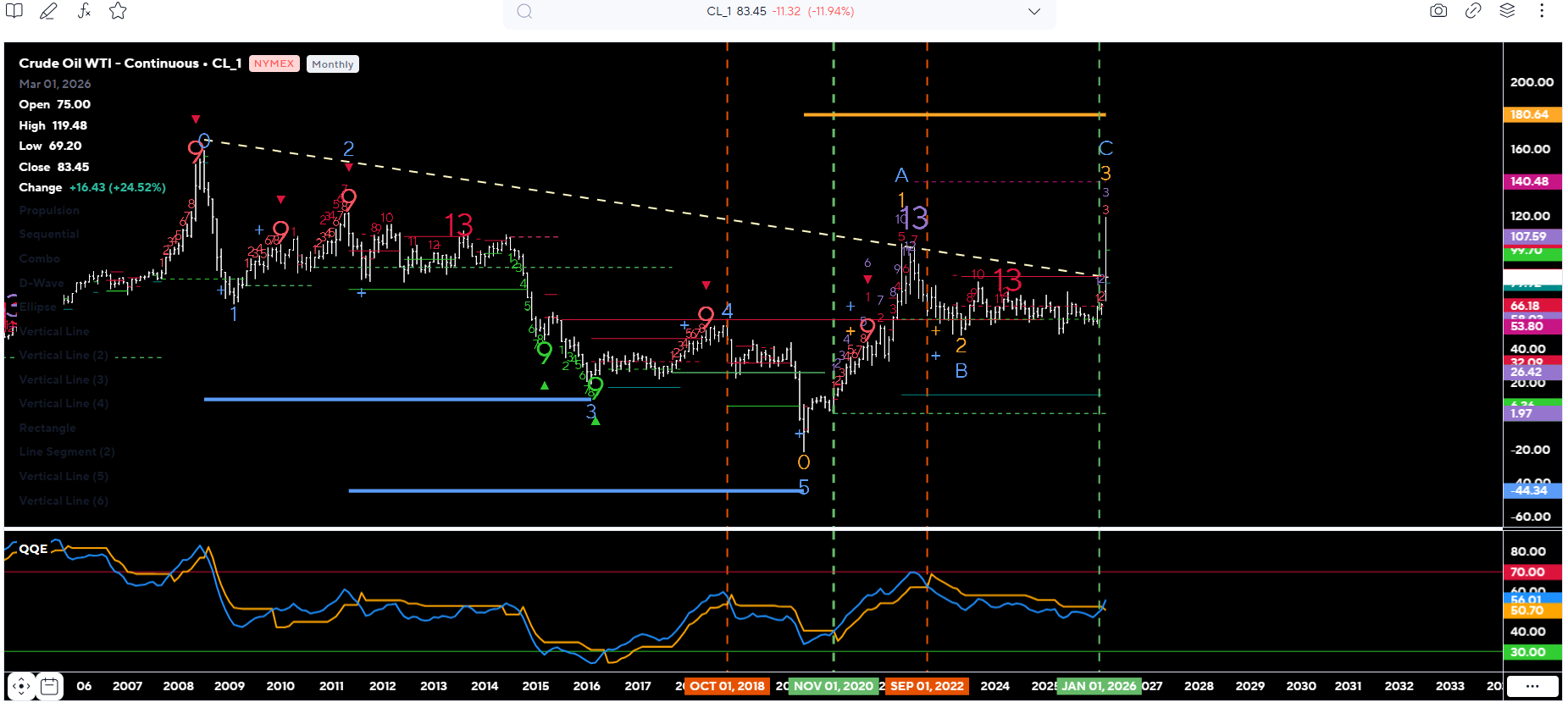 con questa chart mensile su base strategica di DeMark.
