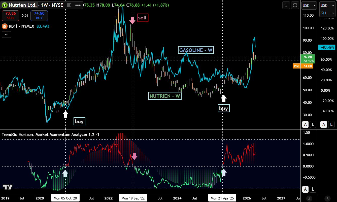 NB. Il segnale di BUY su NUTRIEN è scattato 1 anno fa: da allora +50%. I segnali CONTRARIAN sono questi: quando nessuno ne parla e quando sono convenienti è il momento migliorare per accumularli.